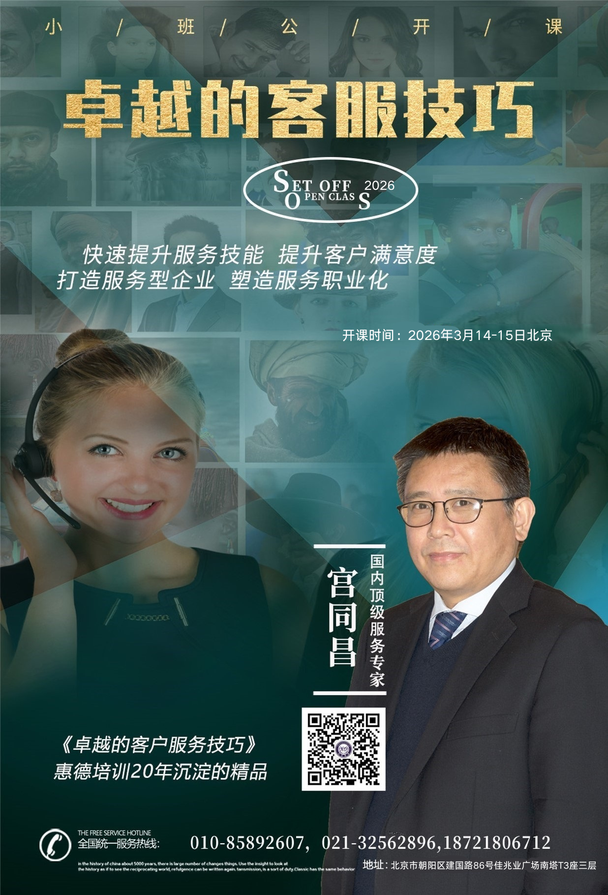 2026年3月12-13日 由北京惠德培训主办、客户服务技巧专家宫同昌老师主讲的《卓越服务意识与沟通技巧》线下培训即将在北京开课。