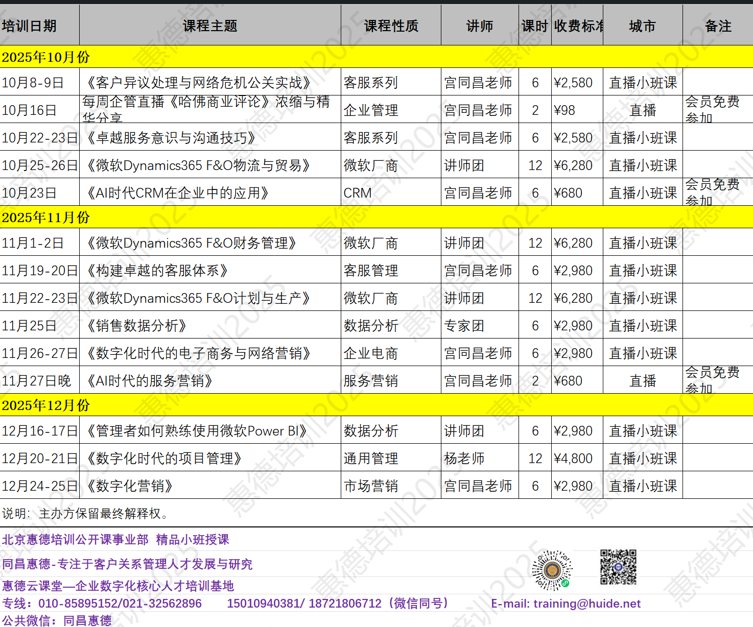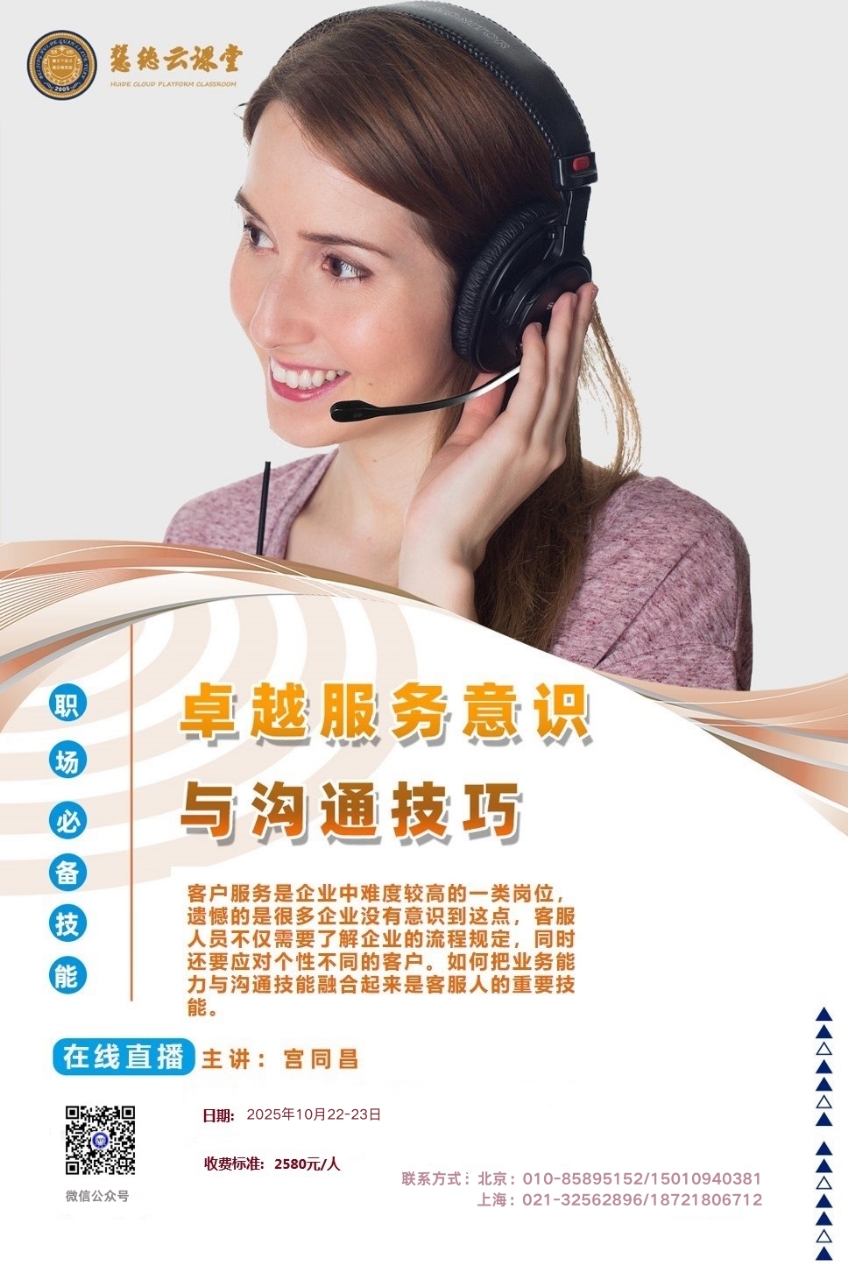 10月22-23由惠德云课堂主办,客户服务管理专家宫同昌老师主讲的《卓越服务意识与沟通技巧》在线互动课堂即将开课,欢迎大家报名参加。