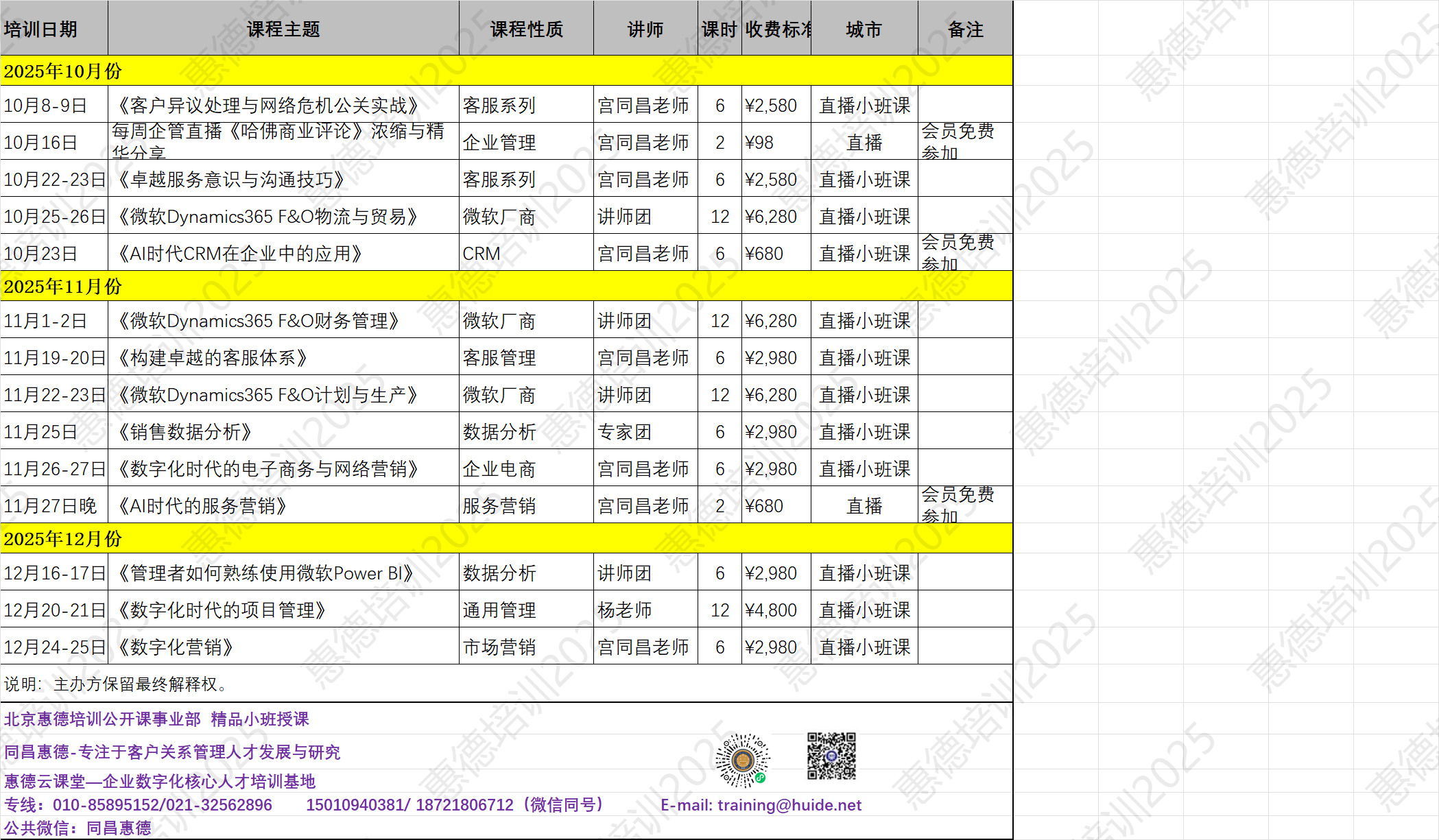 2025年10--12月惠德云课堂线上公开课排期表已经更新,欢迎大家前来报名咨询。