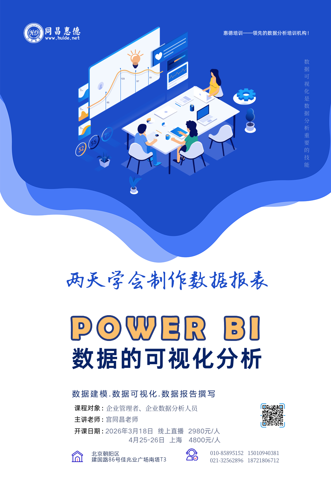 2026年3月18日由惠德云课堂主办的《Power BI数据分析可视化》线上互动课堂即将开课,本期培训由客户管理与数据分析专家宫同昌老师授课。欢迎您来点咨询并了解详细课程介绍: