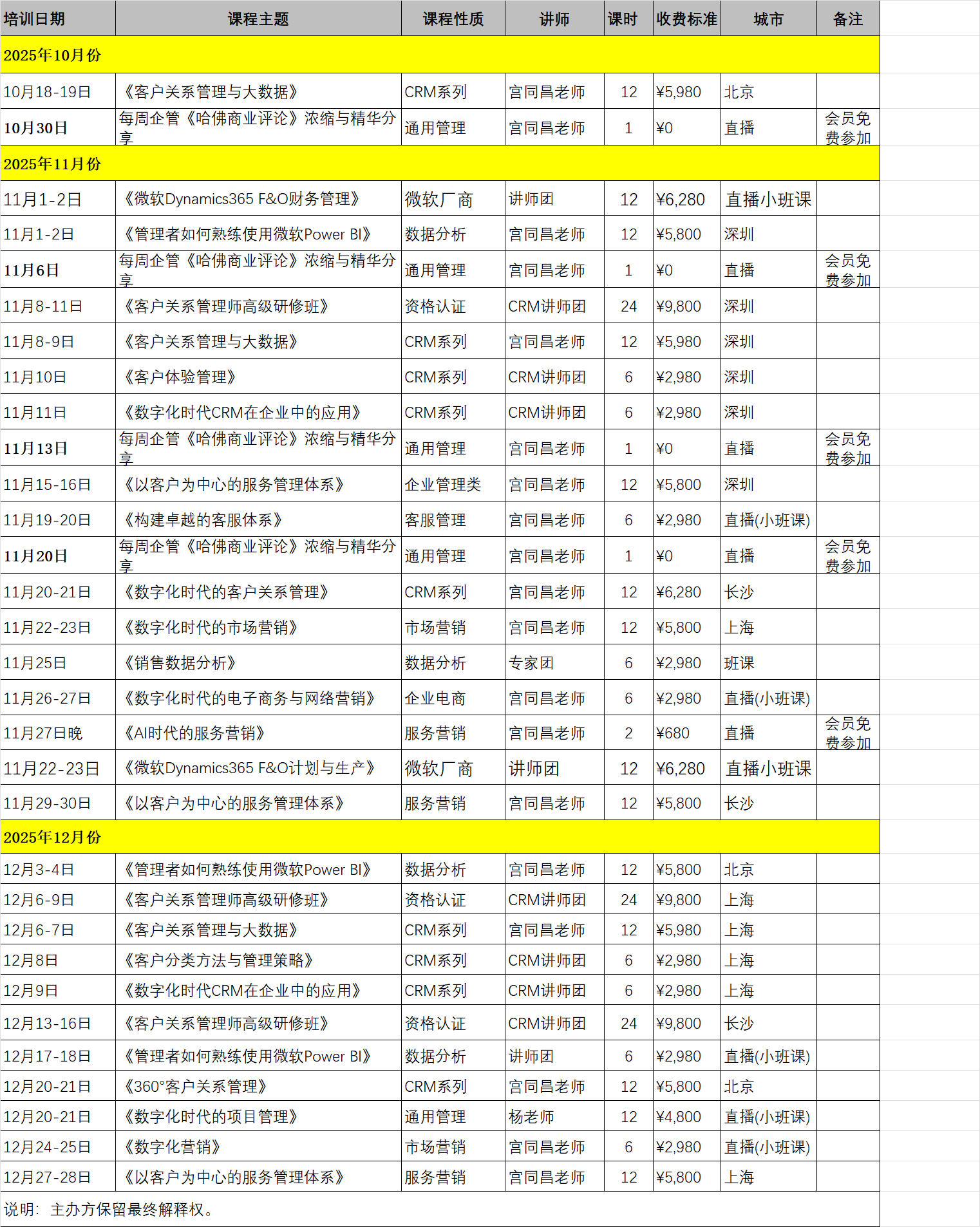 2025年11-12月份北京惠德培训主办的公开课排期已经确定,欢迎各位企业朋友关注。