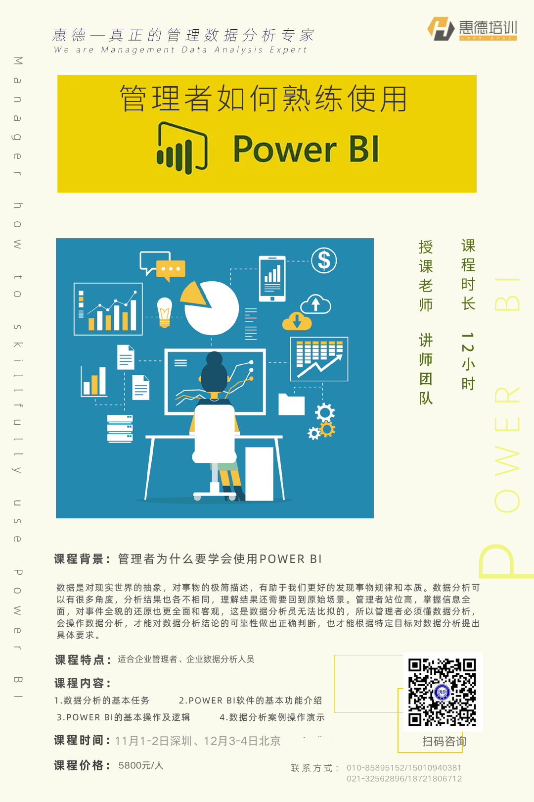 由惠德培训主办的的《管理者如何熟练使用PowerBI》线上、线下培训即将开课。